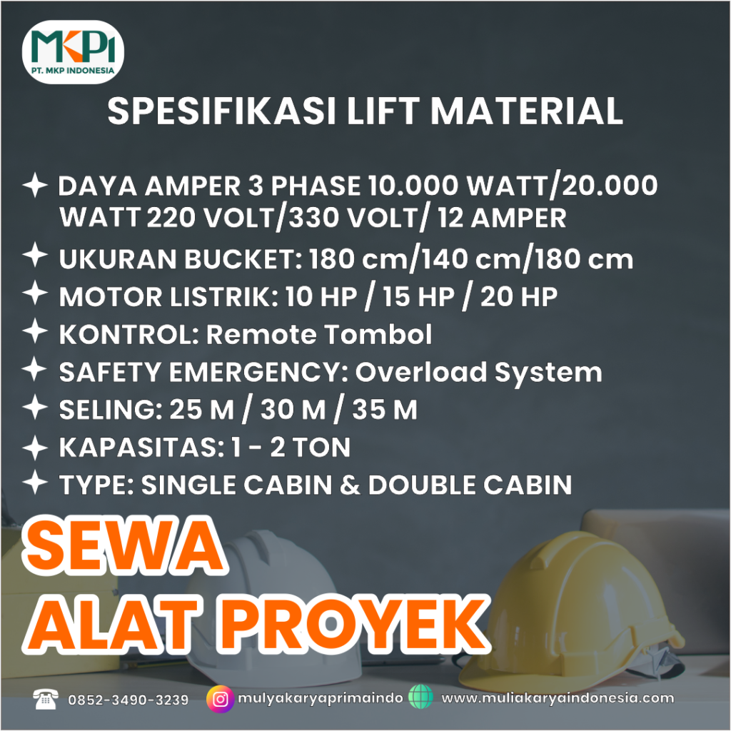 Sewa Alat Proyek Lift Barang | Lift Material | Lift Alat Proyek Ciamis Jawa Barat | 0852-3490-3239