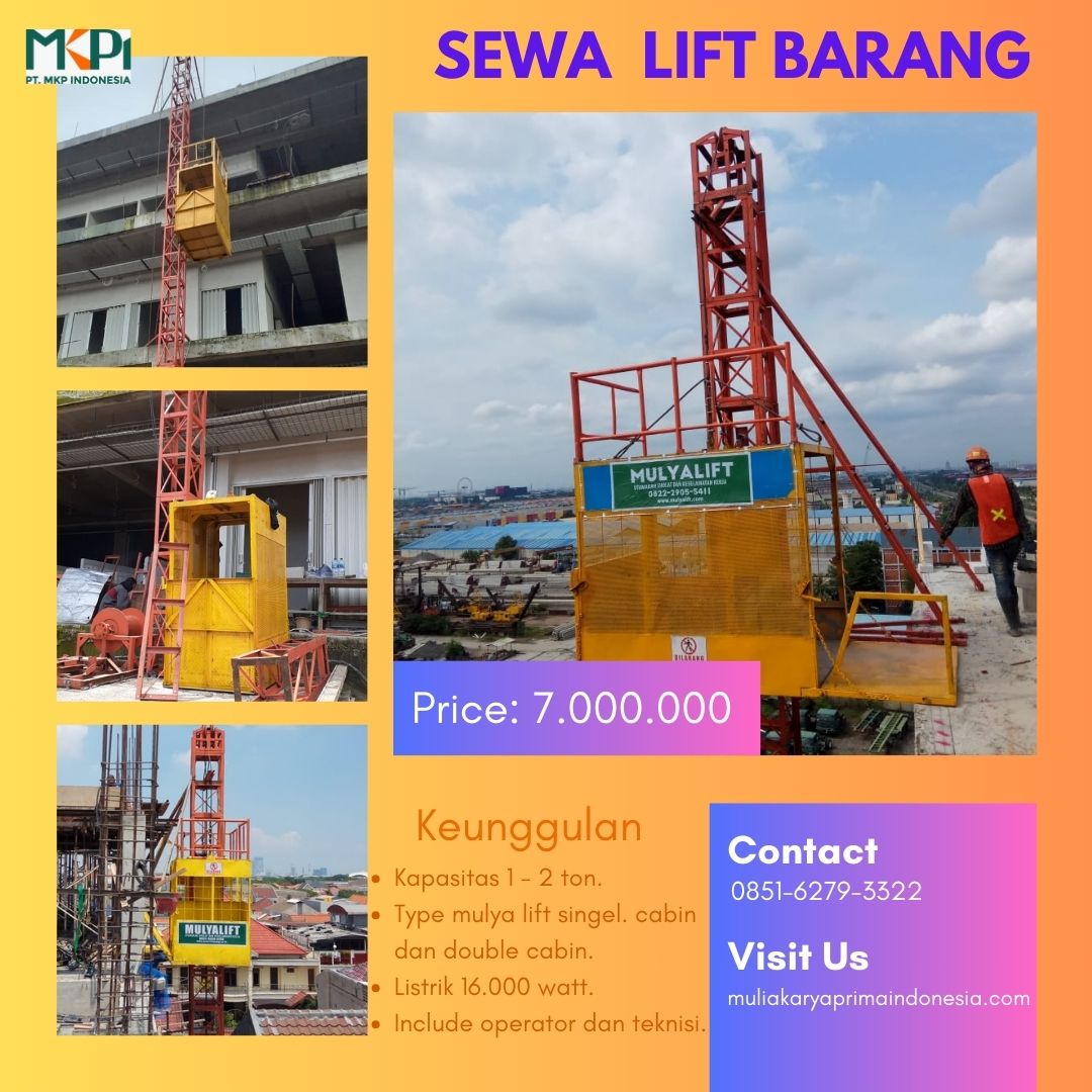 PT. MULIA KARYA PRIMA INDONESIA – Lift Barang / Alimak – merupakan sebuah alat mengangkut barang atau material. Lift Barang pada umumnya digunakan untuk mengangkut barang atau material proyek secara vertikal, dari lantai bawah ke lantai lainnya dengan sistem tombol switch dan dioperasikan oleh operator kami yang berkompeten.