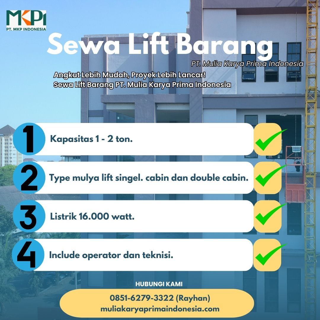 Sewa Lift Barang PT MKP INDONESIA di KOTA SUKABUMI, Provinsi JAWA BARAT | 0851-6279-3322